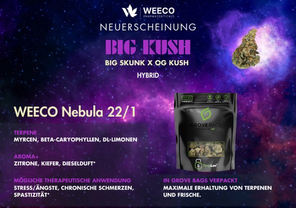 Die Weeco Pharma GmbH erweitert ihr Sortiment um die neue Cannabissorte Pulsar 25/1 – eine sativa-dominante Blüte mit 25 % THC und < 1 % CBD. Die Sorte überzeugt durch ihr fruchtig-zitrisches Aroma und eine aktivierende Wirkung, ideal für die Tagesanwendung. Pulsar 25/1 wird unter EU-GMP-Standards produziert und ist ab sofort über ausgewählte Apotheken verfügbar.