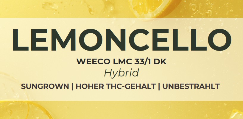 Lemoncello ist mehr als nur ein Name. Es ist ein Versprechen an Patientinnen und Patienten, die nach neuer Energie, mentaler Klarheit und emotionaler Balance suchen. Als Hybrid mit einem hohen THC-Gehalt von 33 % richtet sich WEECO LMC 33/1 DK an erfahrene Anwender*innen.